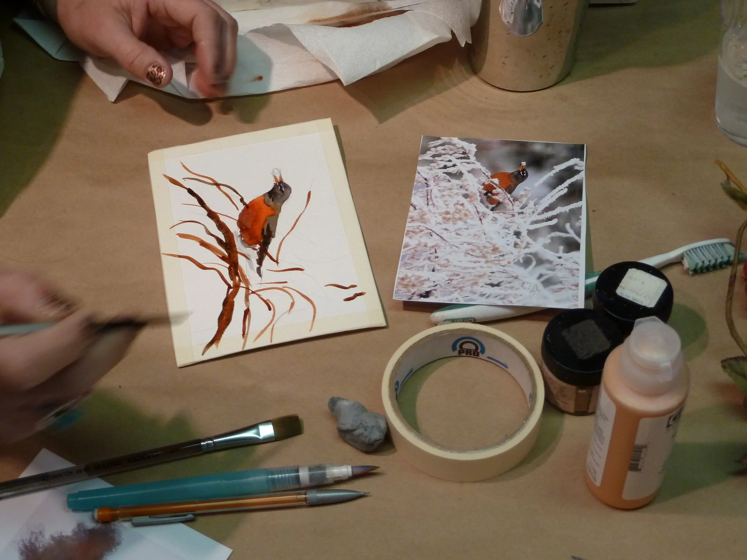 Wintry or Christmas-themed photos to paint from or holiday-themed still life set up. The studio will also have images on hand.