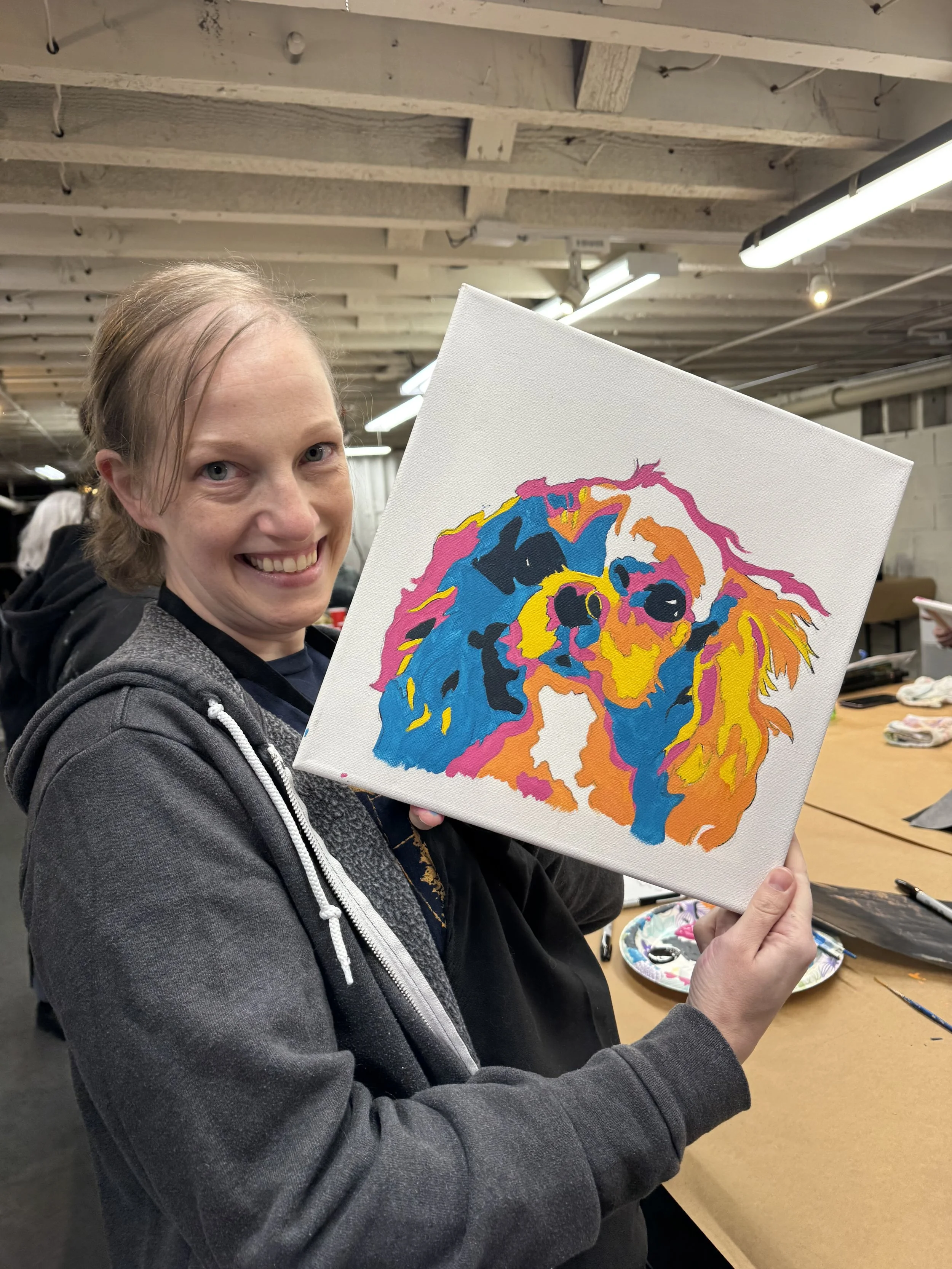 You’ll leave with a ready-to-hang portrait of your beloved pet and the confidence to continue painting in this fun, expressive style.