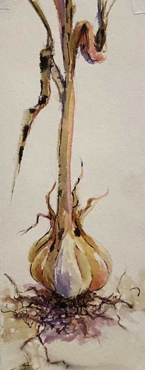 To get warmed up, we will see how varied brush strokes can do your work for you. Blind contour sharpie drawings with wet-into-wet washes on top will make way for painting directly without initial pencil drawings. We will use watercolor with fresh direct brushstrokes and ink embellishments to bring our spring flowers and produce to life. Experiment making beautiful watercolor washes that can be given form with ink, or left to shine unadorned. This is a good class to let yourself try new approaches and go with the flow!